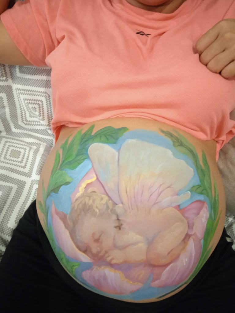 Luego, la pinto. El diseño puede ser el que prefieras. Incluso podemeos dejar un lugarcito listo para colocar las huellas de tu bebé una vez que haya nacido. Puedes dejarle un mensaje a tu bebé, dejar impresión de tus manos, las de tu pareja, las de los hermanos o hermanas. Podemos pintar su signo zodiacal, los deseos o recuerdos que le quieras dejar para el futuro… Es una oportunidad única!!! no la dejes pasar!!!! La réplica de tu panza se te entregará de una a dos semanas tras la impresión. ($3,500.- tres mil quinientos pesos-entrega en una semana a 15 días) Se puede realizar en cualquier etapa del embarazo, incluso puedes hacer una por trimestre y ver cómo crece la panza! Pero si vas a realizar sólo una, recomendamos que sea alrededor de las 37 semanas que es cuando la panza se encuentra más grande! así lucirá increíble!