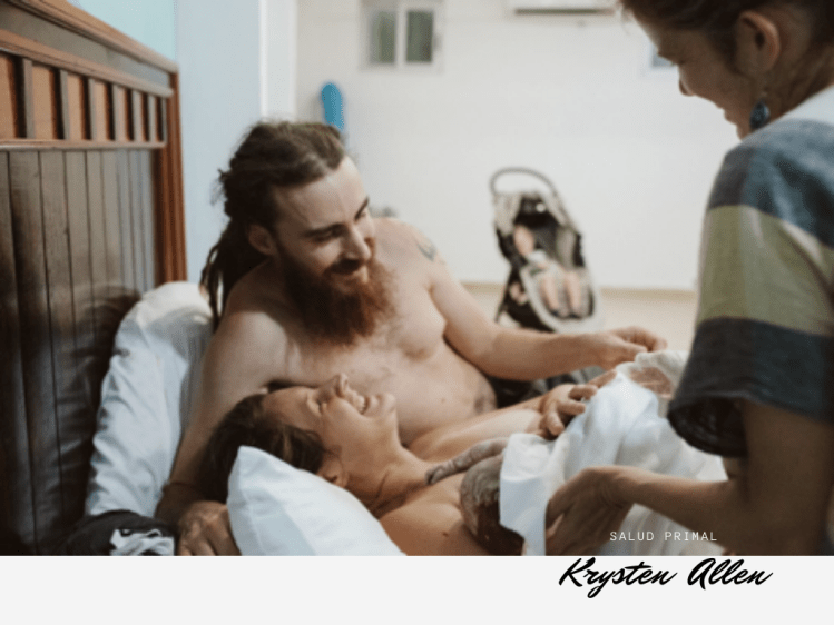 Amamantaba ya cuando salimos a recibir a otro bebé. Un niño, que sería hermano de unas gemelas. Ella lo había soñado antes de embarazarse. Y supo planear sus pasos, su nombre, y su camino ola a ola. Ella era como agua. Yo la sentía de una energía tan diferente a la mujer del parto anterior. Tan luz y agua y música. Bella de todas las bellezas Con su mamá-fuerza, parió y llamamos al esposo que decidieron esperaría afuera. Y pude ver la imagen más conmovedora cuando él entro y ella se levantó de la tina con la placenta aún en el vientre a entregarle su hijo. A mostrarle su orgullo. A compartir el logro.