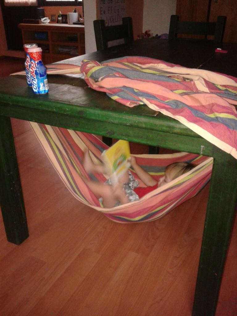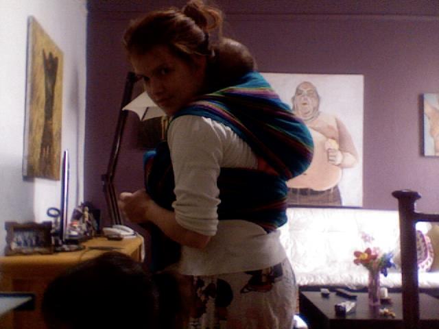 Mira, allí mi BBTina, a sus escasos dos meses, montada en la hamaca/rebozo.